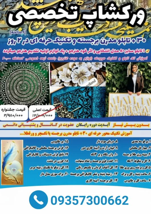 ورکشاپ تخصصی آموزش تابلو مدرن برجسته آموزشگاه نقاشی ابر و باد با همکاری مدرس حرفهای، خانم نرگس نخلی، برگزارکنندهی...