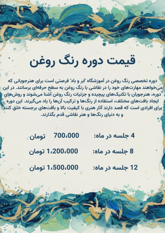 آموزشگاه نقاشی ابر و باد پرند در سال 1402 با مدیریت خانم زینب مختارپور، هنرمندی با بیش از 15...