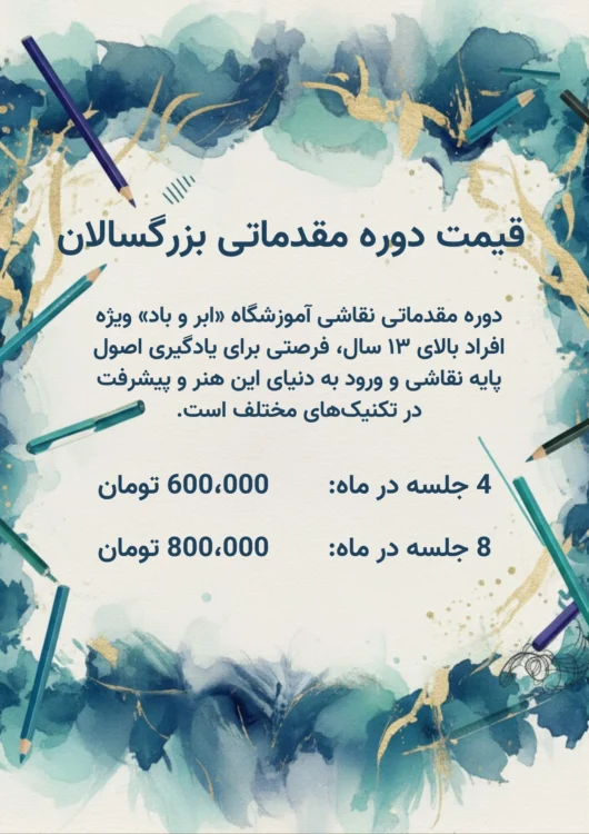 در این دوره مقدماتی، بزرگسالان بالای 13 سال میتوانند با اصول اولیه نقاشی آشنا شوند و پایه محکمی برای...